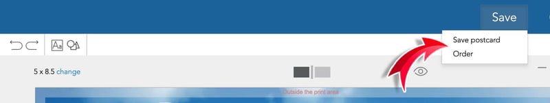 Click “Save” and select “Save postcard” from the dropdown to save your art and click “Save” and select “Order” from the dropdown.