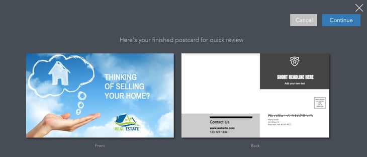 12. Give your postcard one more look. If it is ready to go, click “Continue.”