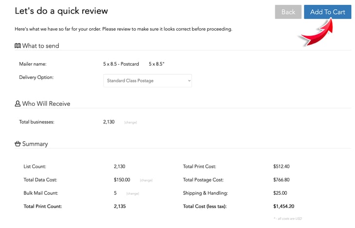 *Please note the “Delivery Option” defaults to 1st Class Presort Postage. You may select Standard Class Postage to reduce the cost.