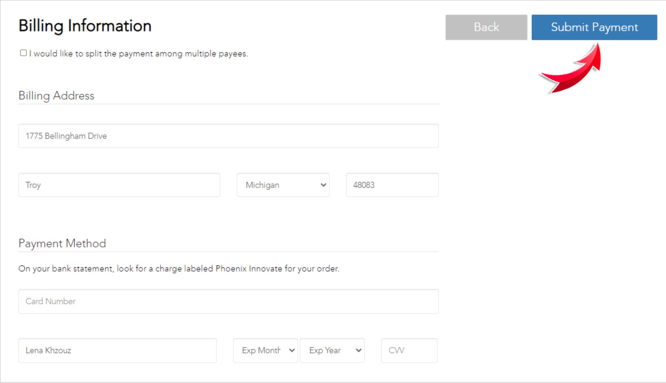 20. Enter your billing address and payment information and click “Submit Payment.”